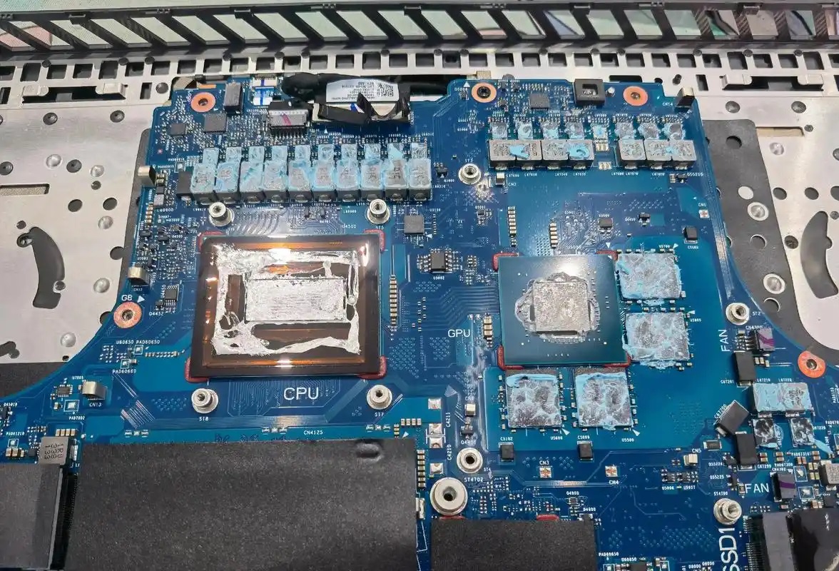 液金在高温下具有流动性。虽然关机冷却后流动性会减弱,但拆开散热模组时,原本均匀覆盖在CPU核心表面的液金很容易散开、滴落,甚至流向主板其他区域。有用户在拆开自己ROG笔记本后惊见“CPU那里都是黑的”,散热效果严重下降。